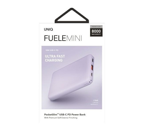 Uniq Fuele Mini 8000Mah USB-C PD hordozható Power bank / külső akkumulátor / powerbank, levendula