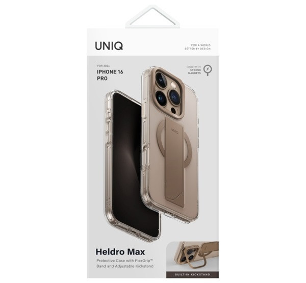 Uniq Heldro Max iPhone 16 Pro MagSafe tok kitámasztóval, arany
