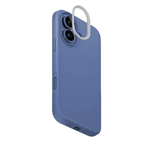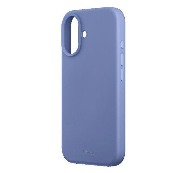 Apple iPhone 16, Szilikon tok, közepesen ütésálló, cserélhető hátsó kamera keret, Magsafe töltővel kompatibilis, Uniq Lino Hue, kék