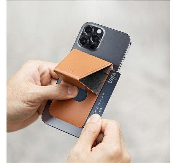 A Uniq Lyft egy kompakt, mégis rendkívül funkcionális mágneses kártyatartó, amely egyben összehajtható állványként is használható.