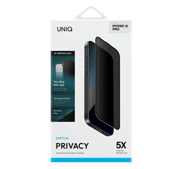 Uniq Optix Privacy iPhone 16 Pro / 17 / 17 Pro tempered glass kijelzővédő fólia felhelyező kerettel