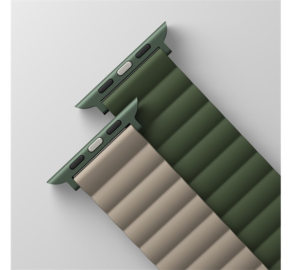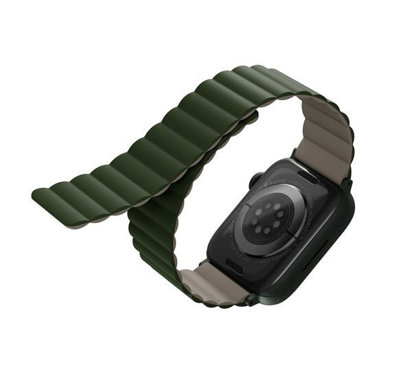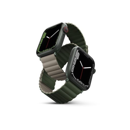 Uniq Revix mágneses szilikon szíj Apple Watch 42/44/45/49mm, zöld/taupe Uniq Revix mágneses szilikon szíj Apple Watch 42/44/45/49mm, zöld/taupe