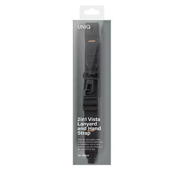 A Uniq Vista egy sokoldalú, állítható telefonnyakpánt és kézi szíj kombinációja, amely biztonságos mágneses csatolási rendszerrel rendelkezik. Könnyedén átalakítható kézi szíjjá, és tartalmaz egy univerzális pántkártyát, amely minden telefonhoz és tokhoz kompatibilis. A könnyű és tartós poliészter pánt kényelmes viselést biztosít.