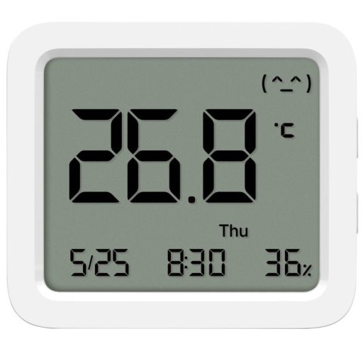 Az intelligens hőmérséklet- és páratartalom-mérő 62,6 x 53,2 mm-es nagy LCD-képernyővel rendelkezik, és a szegmenskijelzős módszerrel jeleníti meg az adatokat.