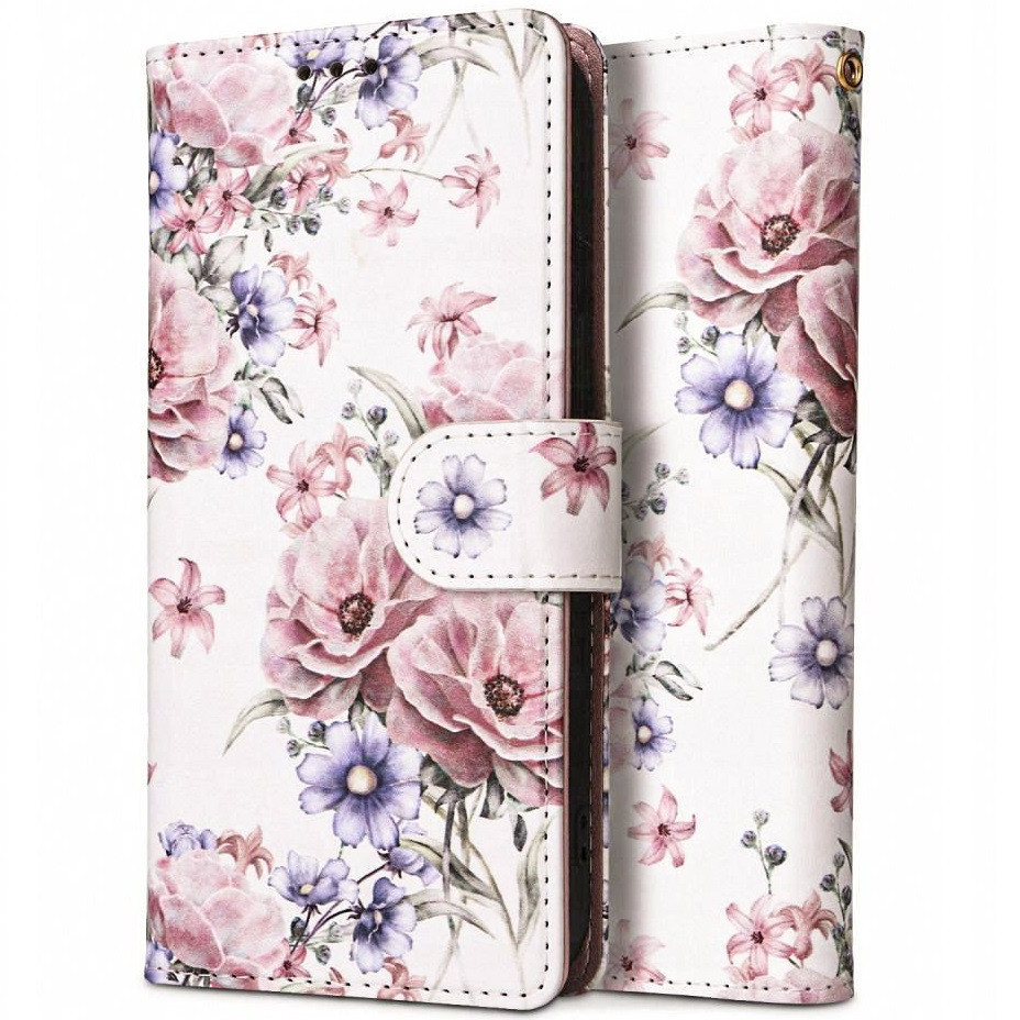 Xiaomi Redmi 14C / Poco C75, Oldalra nyíló tok, stand, mágnes csattal, virág minta, TP Wallett Blossom Flower, fehér/színes
