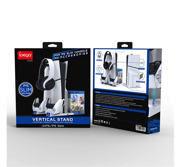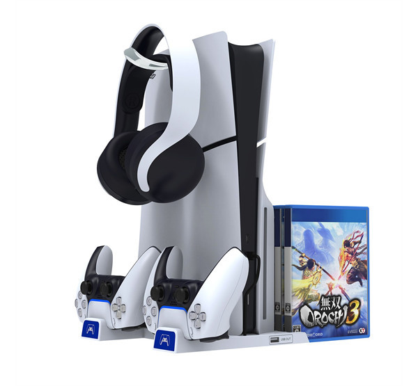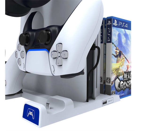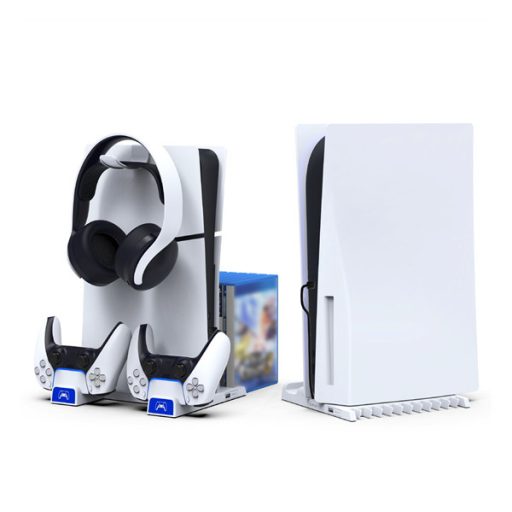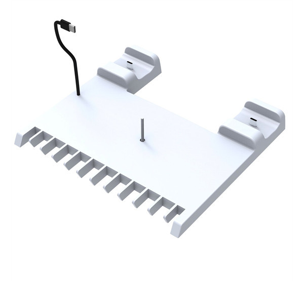 Az állvány két kontroller töltőjével, egy praktikus fejhallgató-állvánnyal és egy kötegelővel rendelkezik kedvenc játékaid számára.