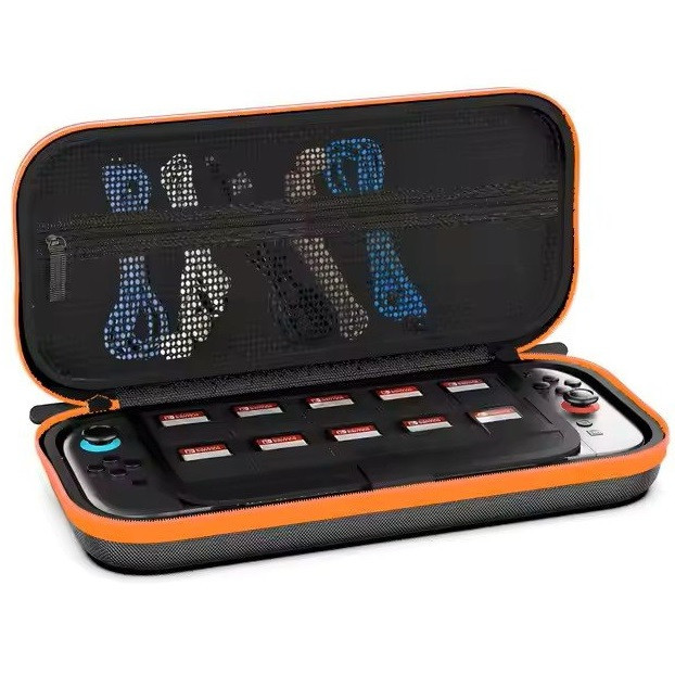 iPega SW2004A Nintendo Switch 2 utazó / tartó tok merev, strapabíró bevonattal, fekete-narancs