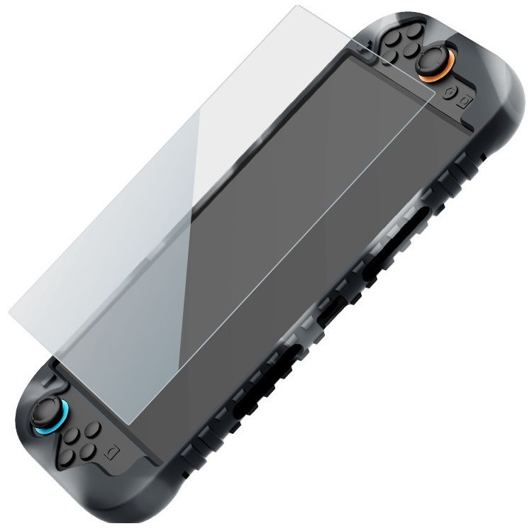 iPega SW2024A Nintendo Switch szilikon tok + tempered glass kijelző védő üvegfólia szett, fekete / átlátszó